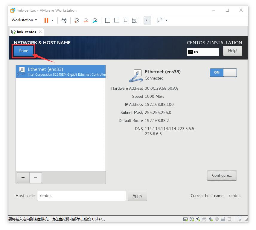 回到网络配置界面,点击左上角的 【Done】按钮,完成配置: