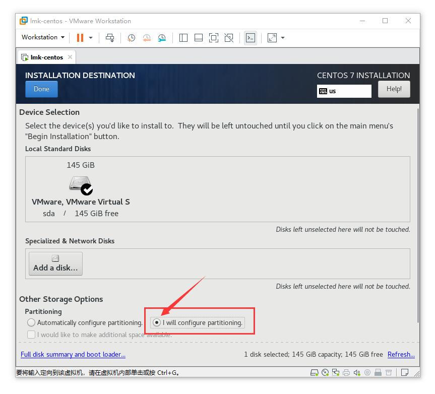 回到主界面,接着点击【INSTALLATION DESTINATION】进行磁盘分区设置: