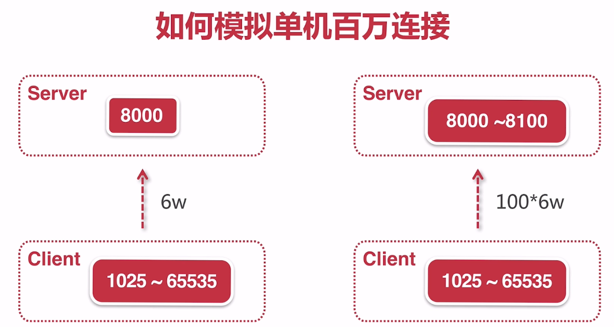 因此 可以 把服务端的端口后 开很多个, 客户端可以任意连某一个端口。就模拟了百万连接