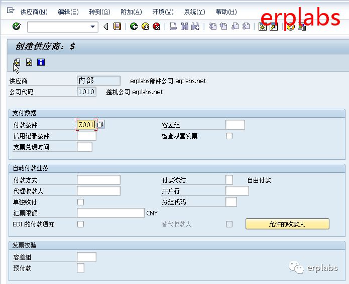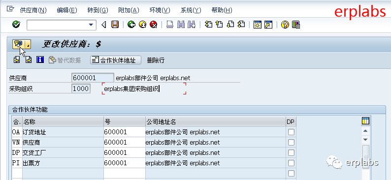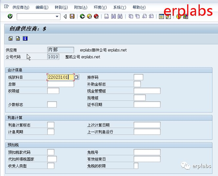 erplabs整机公司代码下,有公司间供应商是部件公司,在SAP新增供应商资料。
