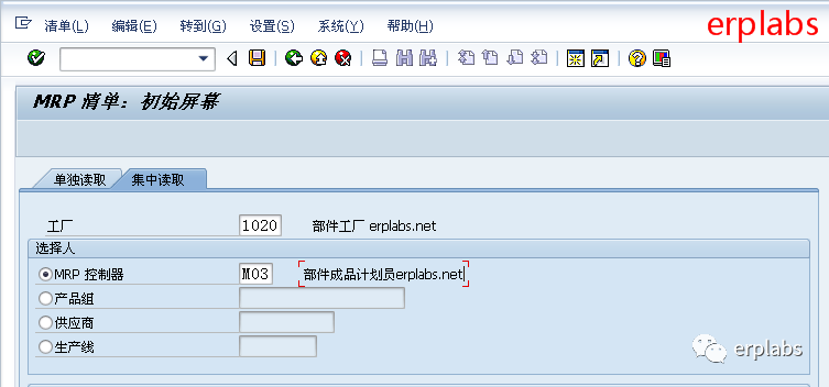 输入工厂1020部件公司,MRP控制器输入M03部件公司计划员,回车,进入下一界面