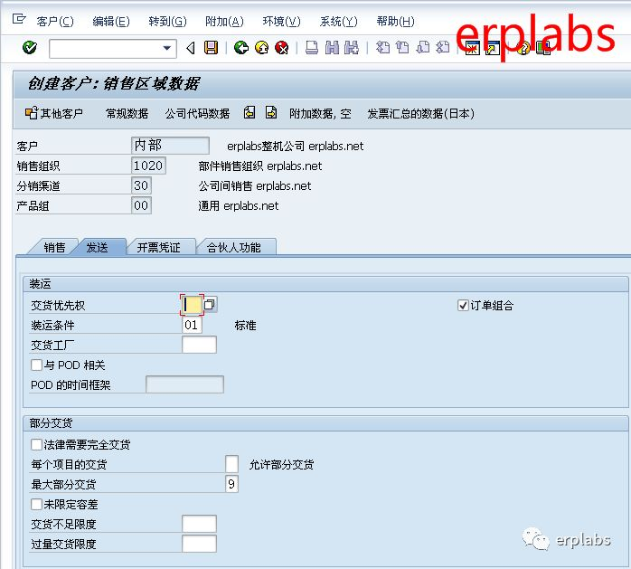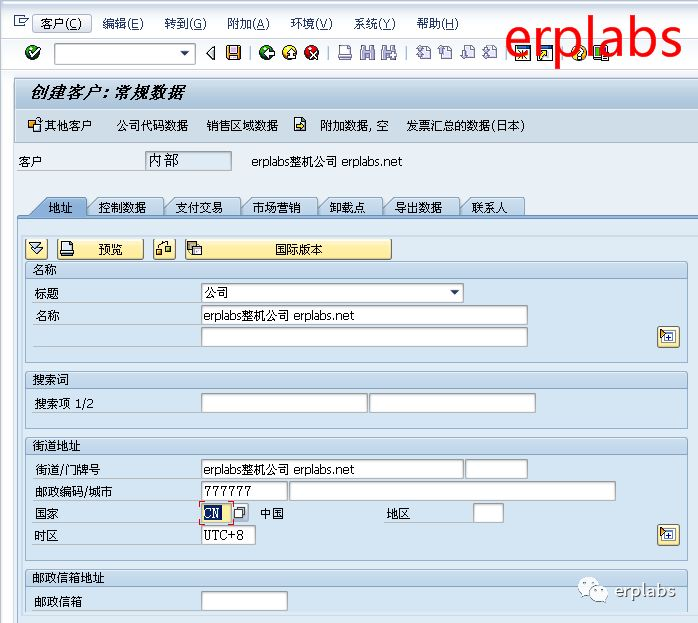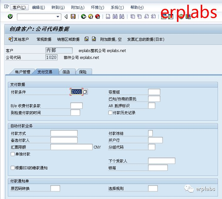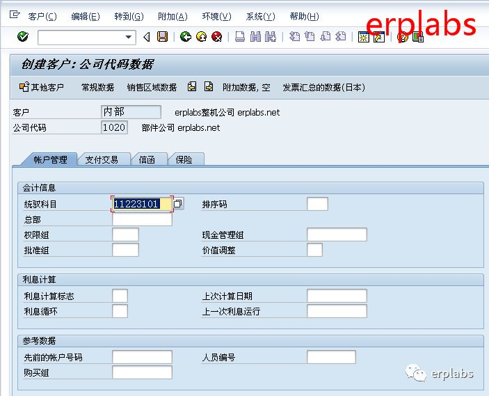 erplabs部件公司向整机公司供应部件,整机公司是部件公司的客户,在SAP新增以下集团内公司间客户。后台配置中公司间客户将与公司代码1010绑定。