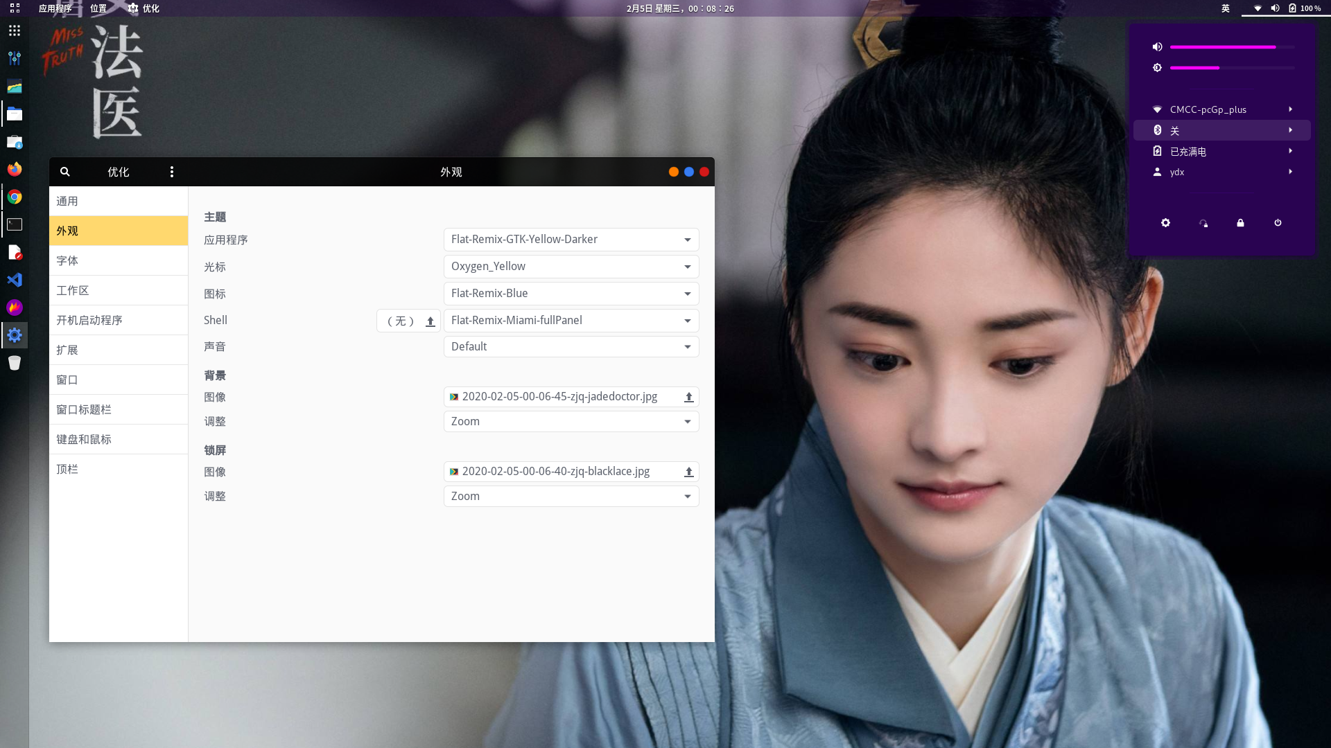 安装gnome扩展后,设置主题和优化配置,系统变得很友好。😁