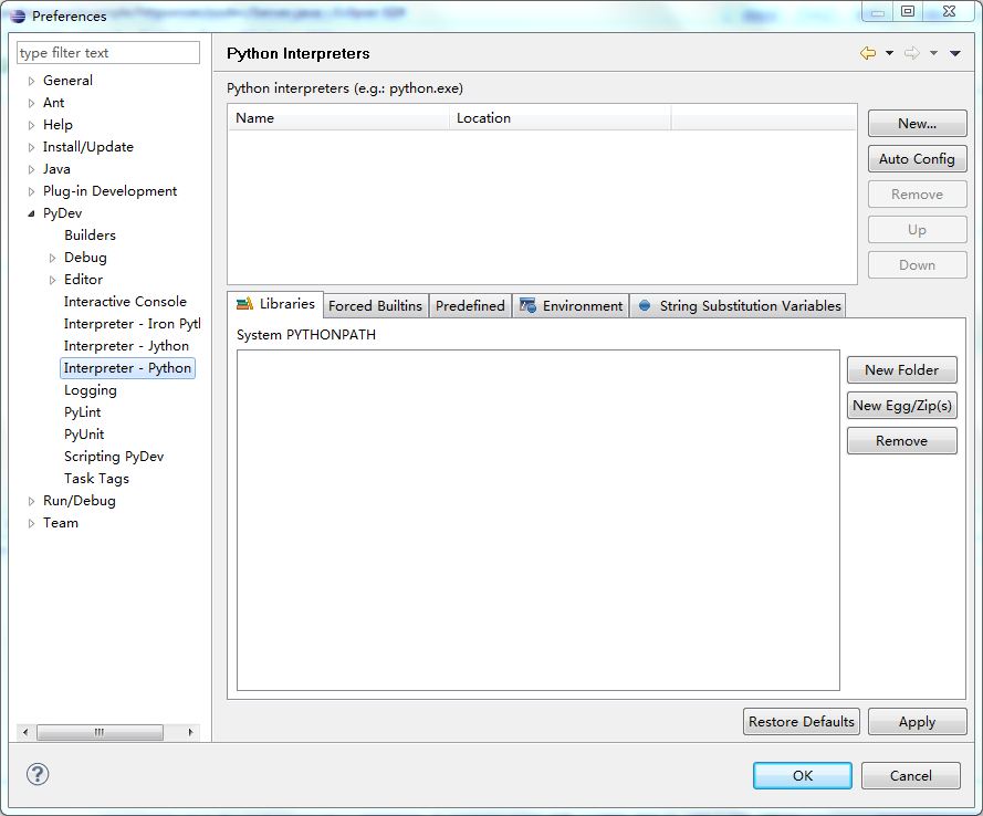 在Help菜单中,选择Install New Software···, 选择Add按钮,Name:PyDev(这个随便起),Location:http://pydev.org/updates(PyDev的更新地址),OK