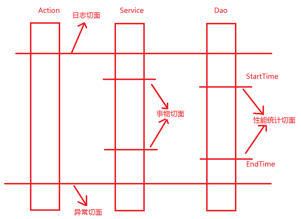 将程序宗交叉业务逻辑(事物、日志)代码提取出来,封装成切面,有AOP容器在适当时机(代码位置)将封装的切面动态的织入到具体业务逻辑中。