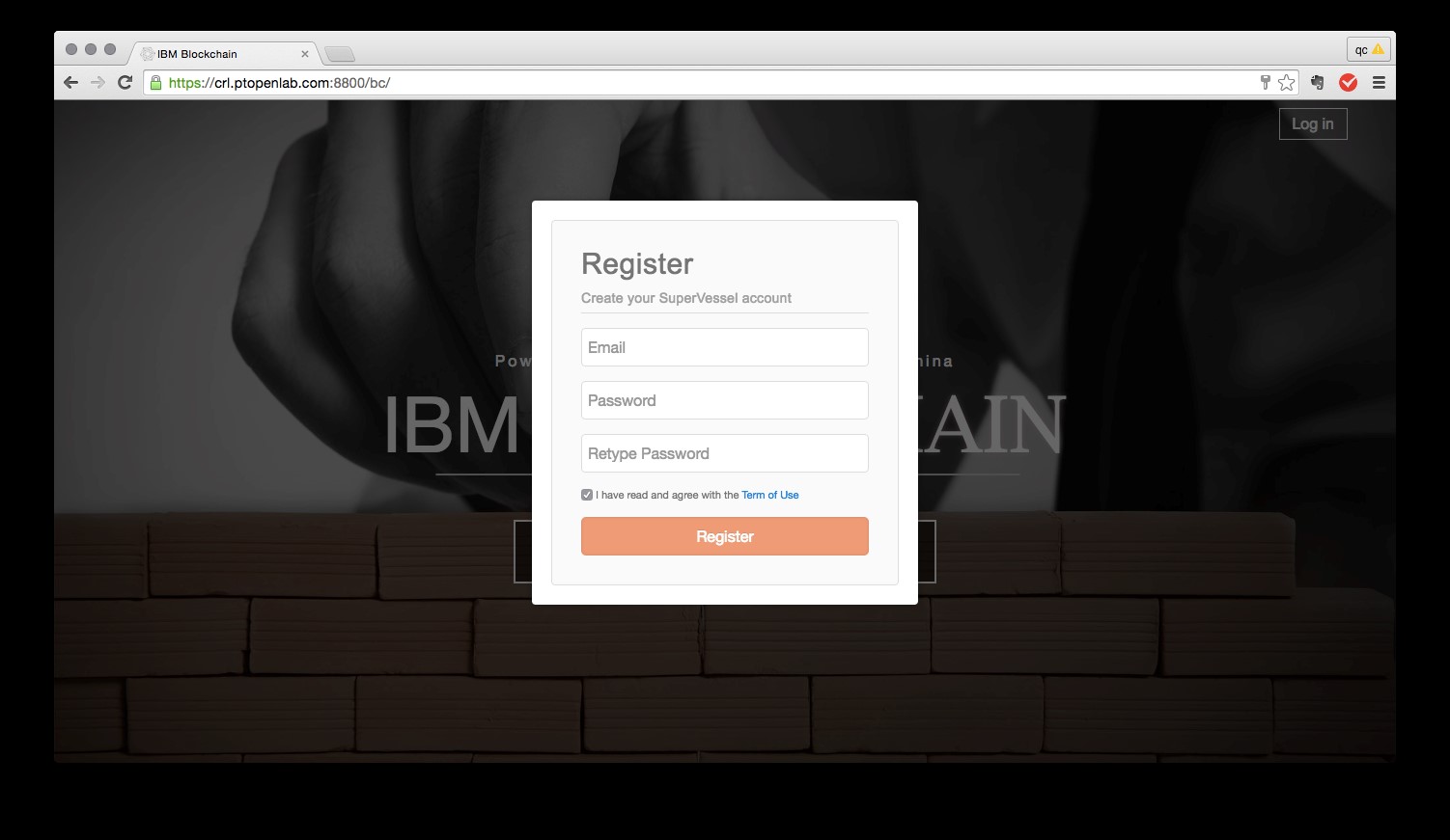 访问超能云(SuperVessel)区块链服务的公测地址 http://crl.ptopenlab.com:8800/bc