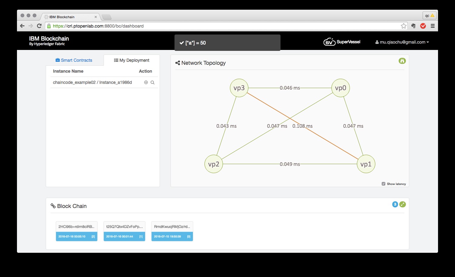 IBM中国研究院开发的超能云(SuperVessel:http://www.ptopenlab.com)平台提供了给区块链爱好者、开发者的区块链开发测试环境。通过该平台,用户能够免费、超快速创建基于Hyperledger Fabric的多节点区块链、并在自己的链上花式玩转智能合约。