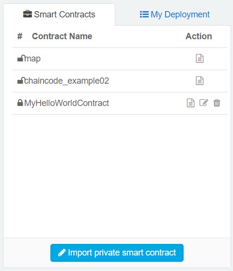 之后Smart Contracts列表里便出现我上传的合约,可以像前文一样进行部署、调用和查询了。