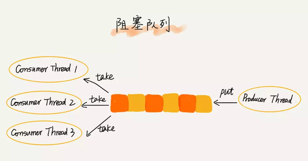 事实上,上述定义就是一个生产者消费者模型。我们可以使用阻塞队列轻松实现一个生产者消费者模型。可以通过调整生产者消费者的数量来优化模型,比如配置多个消费者来应对一个生产者。