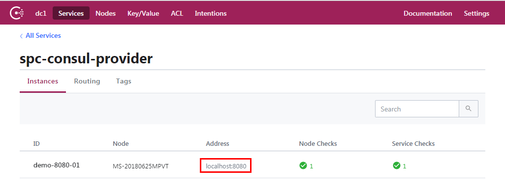 在consul可视化页面中可以看到红框内容要和注册服务的工程ip:port一致(而这个ip:port就是上面提醒要注意的配置,尤其是端口不要搞成最下面的那个),不一致的话调用的时候就会出现404。
