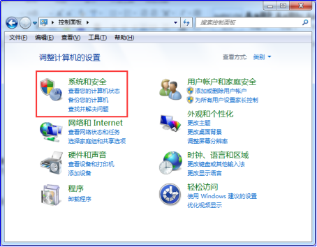 1.点击“开始”菜单,进入系统“控制面板”,在控制面板点击“系统和安全”: