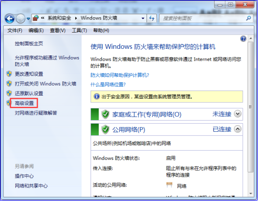 继续点击“高级设置”,进入防火墙设置界面: