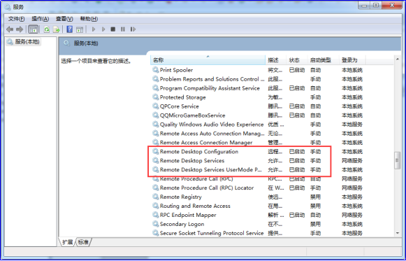继续查资料,发现还要检查一下WIN7的Remote Desktop Services服务是否已经打开: