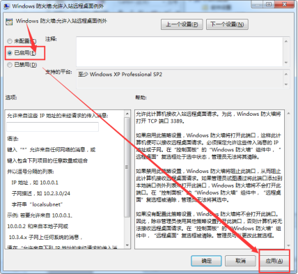 解决方法:开始-运行-gpedit.msc-计算机配置----->管理模板----->网络----->网络连接----->Windows防火墙----->标准配置文件----->Windows防火墙允许入站远程桌面例外更改为启用即可。