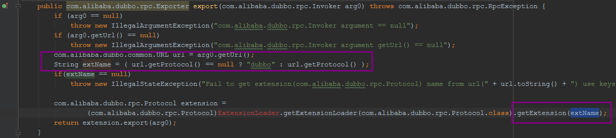 上面分析了这个name, 如果没配置的话, 取的dubbo. 这个Extension取到的是DubboProtocol.