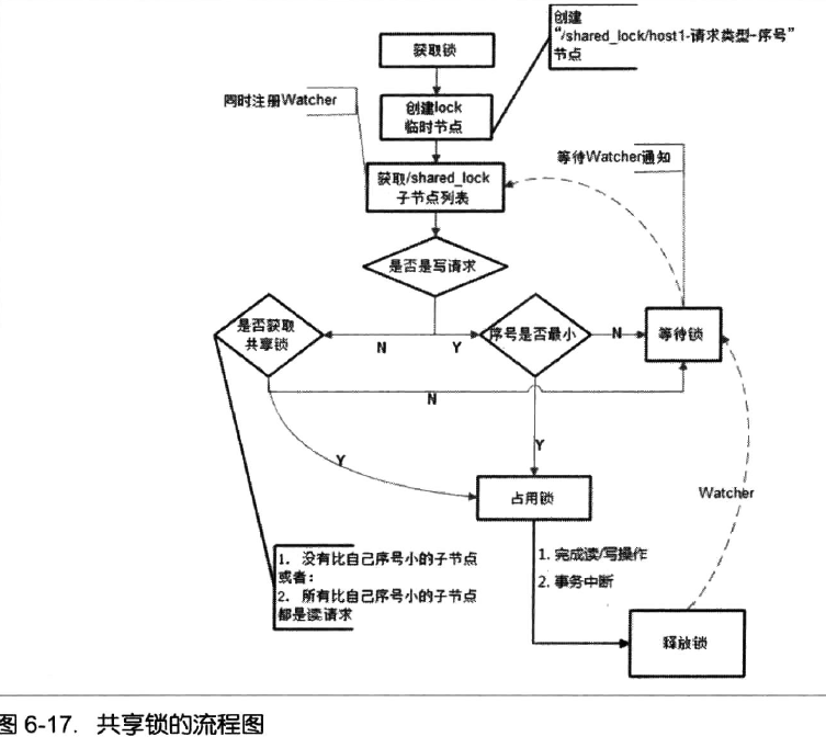若没有比自己序号小的子节点或所有比自己序号小的子节点都是读请求,那么表明自己已经成功获取到共享锁,同时开始执行读取逻辑,