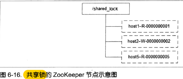 - 如果是读请求,那么就创建例如/shared_lock/host1-R-00000001的节点,