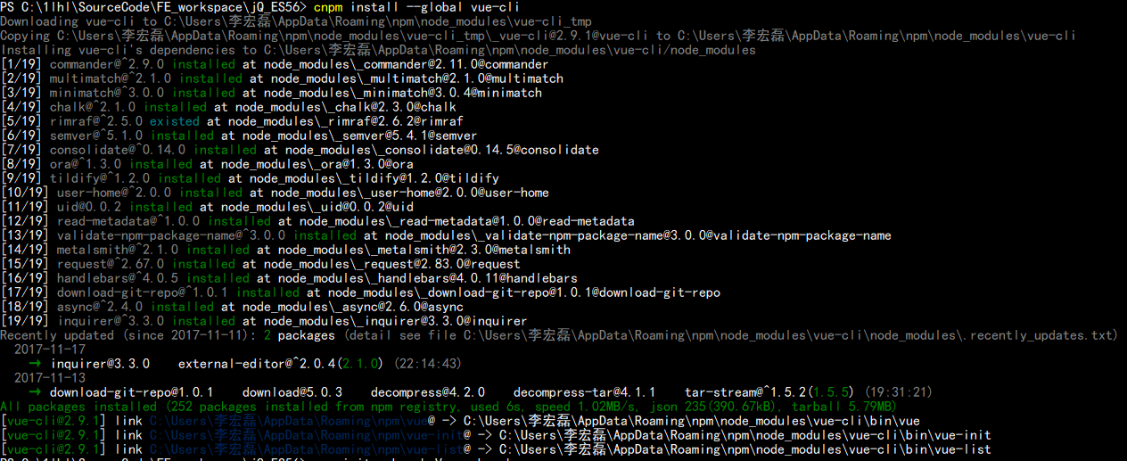 执行完后即可全局用cnpm来代替npm了,这样在其它项目安装上非常快速!