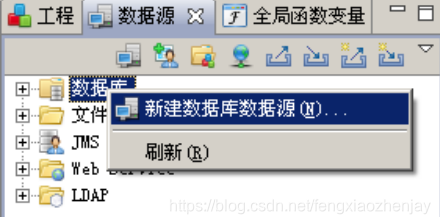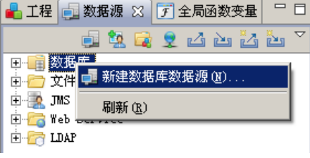 切换到【数据源】选项卡,在【数据库】点击右键,选择【新建数据库数据源】菜单项,打开新建数据库数据源对话框,即可将数据源指向源数据库