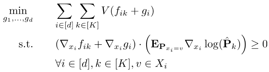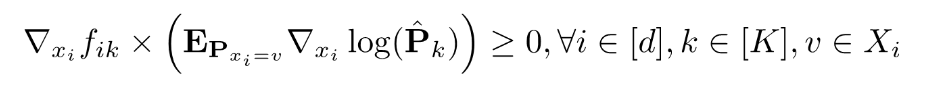 任意一个shape function fik (对应feature i和class k)的形状,必须要和真实的预测概率Pk的形状相符,即我们不希望看到一个shape function是递增的,但实际上预测概率是递减的情况。