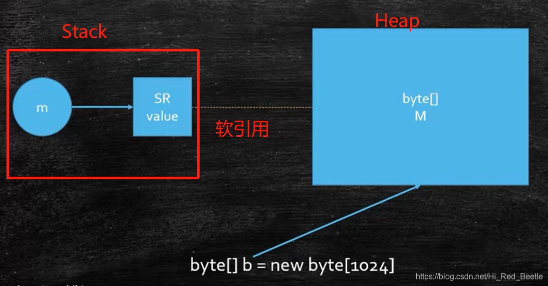 SoftReference<byte[]> m = new SoftReference<>(new byte[1024 * 1024 * 10]);//大小为10M