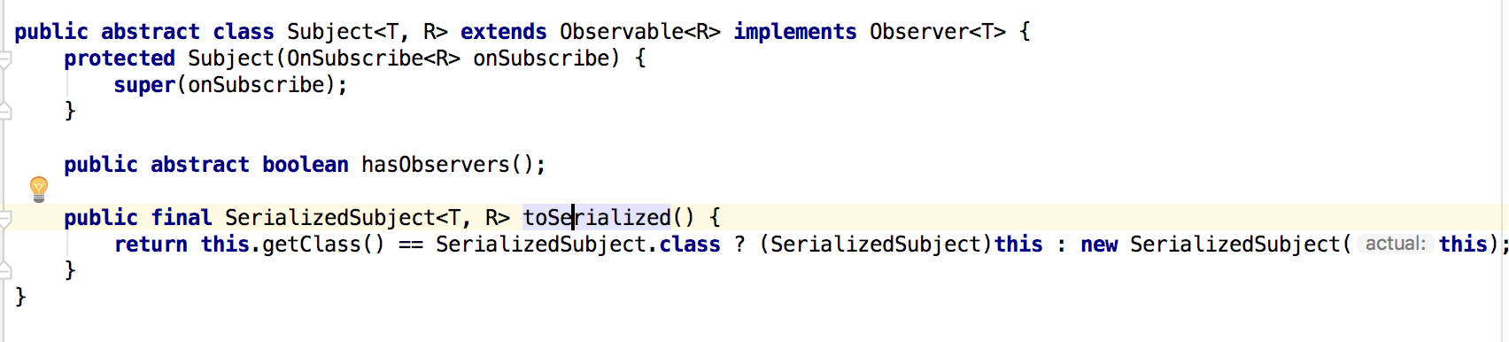 Subjects 是一个继承了 Observable 和实现 Observer 的接口,咋看之下看起来有点奇怪,但是在很多情况可以让代码写起来简单。