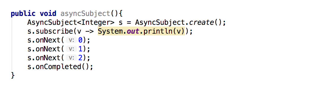 AsyncSubject 也可以缓存最后一个值,区别是在 sequence 完成之前不会输出任何值。
