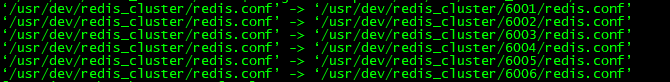 echo /usr/dev/redis_cluster/6001 /usr/dev/redis_cluster/6002 /usr/dev/redis_cluster/6003 /usr/dev/redis_cluster/6004 /usr/dev/redis_cluster/6005 /usr/dev/redis_cluster/6006 /usr/dev/redis_cluster/6007 /usr/dev/redis_cluster/6008 | xargs -n 1 cp -v /usr/dev/redis_cluster/redis.conf