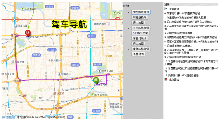 var endName = "北京站"; var BusArr = []; var WalkArr = []; var onbus = new Array(); var onwalk = new Array(); //结果输出用表格展现,输出表格头