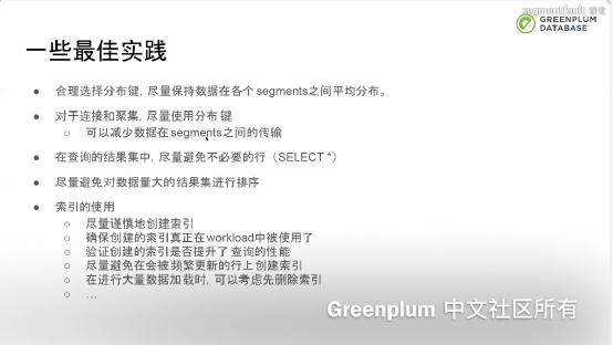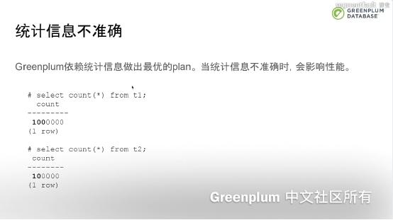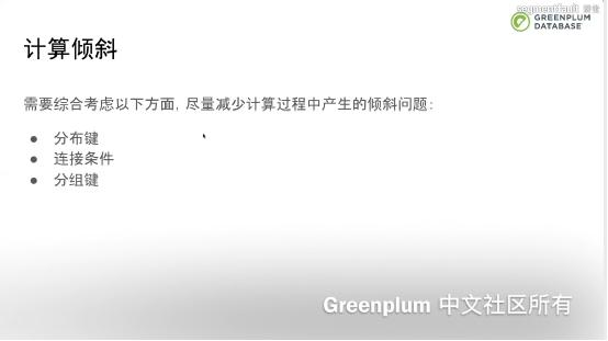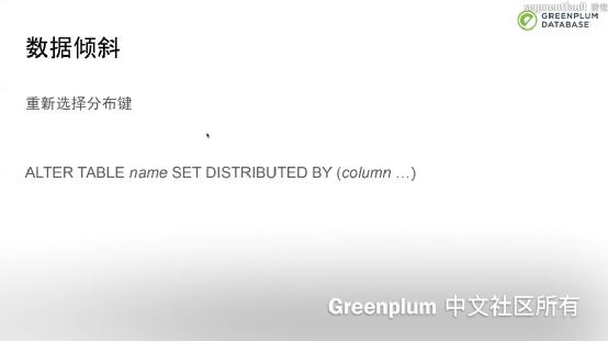 使用gp_skew_coefficients和gp_skew_idle_fractions来查看表的倾斜的情况,其中gp_skew_coefficients是标准偏差除以平均值,值越低越好。gp_skew_idle_fractions是表扫描期间空闲的系统百分比,超过10%的表应该评估表的分布策略。