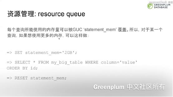 资源管理主要与resource queue中的PRIORITY和MEMORY_LIMIT有关