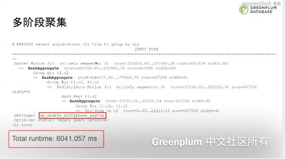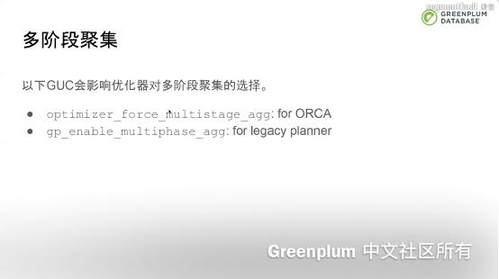 如果参数gp_enable_multiphase_agg是打开的,GUC优化器会选择一个最优的优化器来执行。