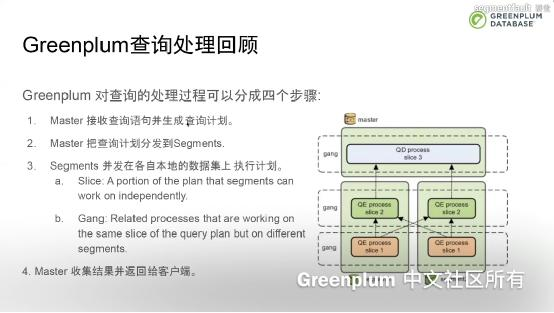 b、Gang : Related processes that are working on the same slice of the query plan but on different segments