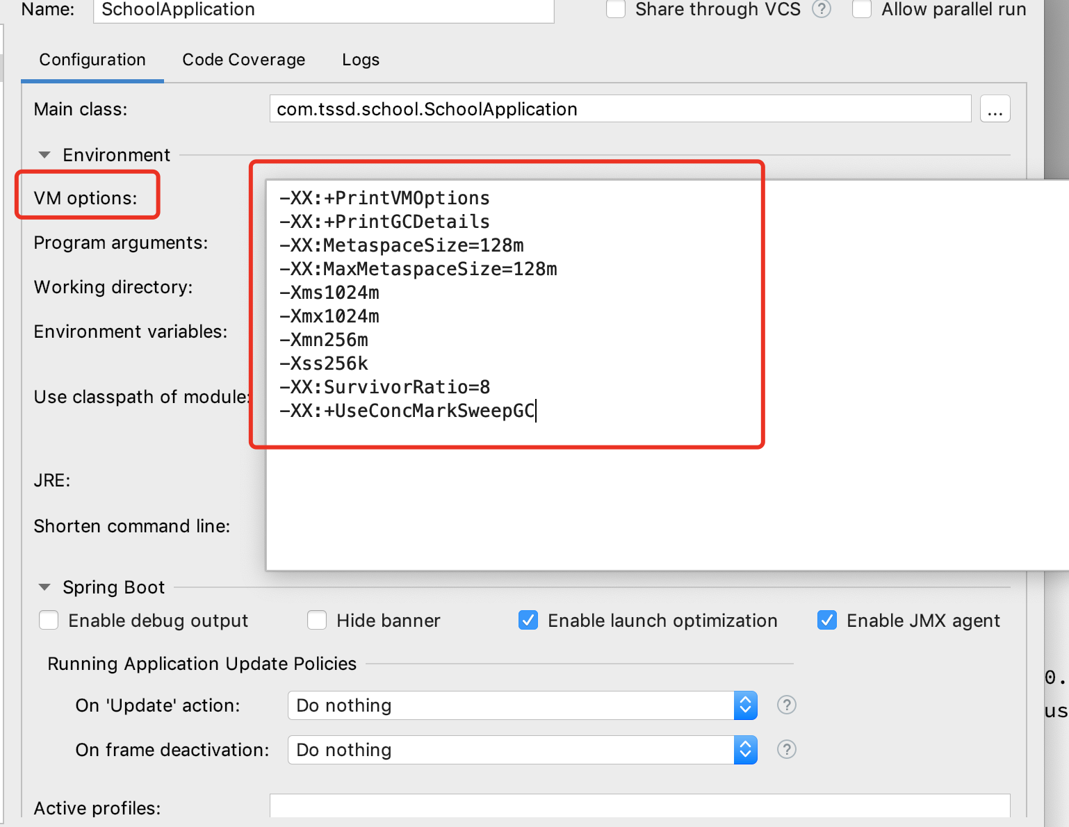 java -jar -XX:MetaspaceSize=128m -XX:MaxMetaspaceSize=128m -Xms1024m -Xmx1024m -Xmn256m -Xss256k -XX:SurvivorRatio=8 -XX:+UseConcMarkSweepGC mjt-1.0.0.jar