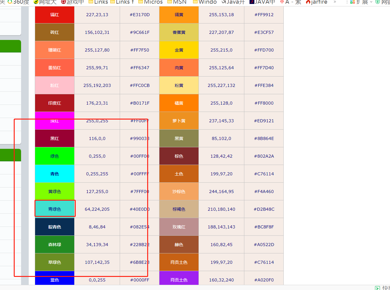 2-2-1-3、颜色表,看完我已经不会区分颜色了