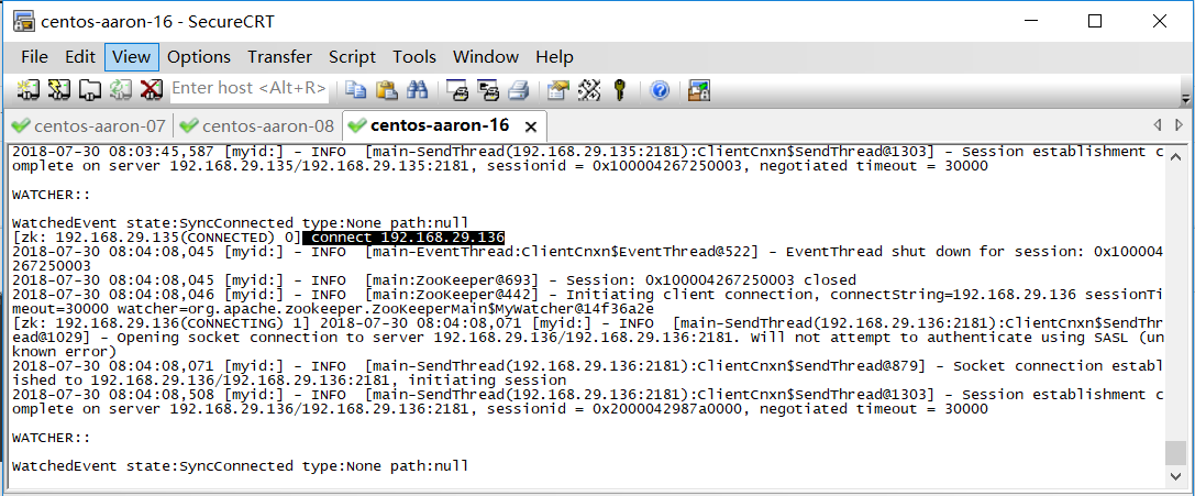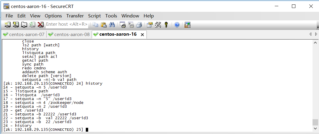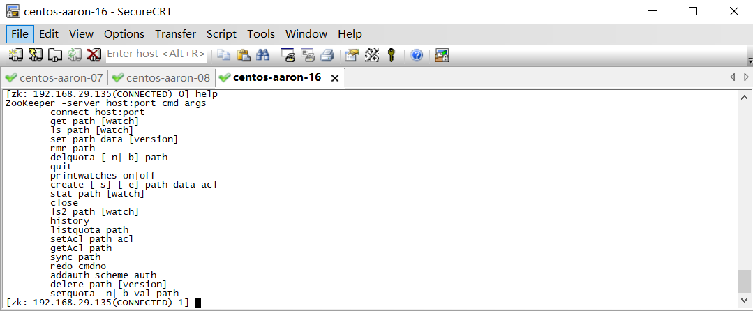 [zk: 192.168.29.135(CONNECTED) 12] quit