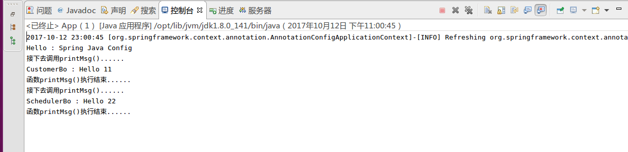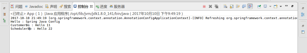 2017-10-10 22:45:49 [org.springframework.beans.factory.xml.XmlBeanDefinitionReader]-[INFO] Loading XML bean definitions from class path resource [com/yiibai/core/applicationContext.xml]