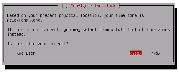 安装程序会根据您之前设定所在地区的选择自动判断您所在的时区,并要求您确认: