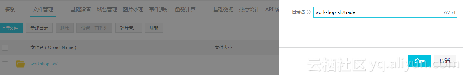 备注:Bucket名称是全局唯一,如果提示名称已存在,请更换一个Bucket名称。