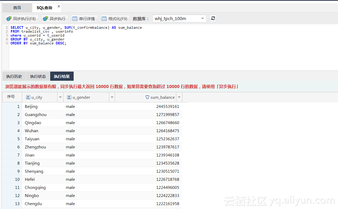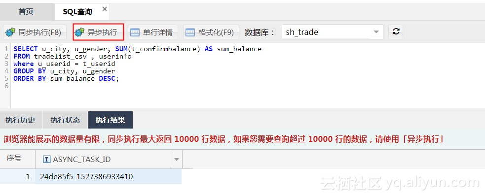 异步执行查询,将查询结果,以CSV格式,输出到OSS上