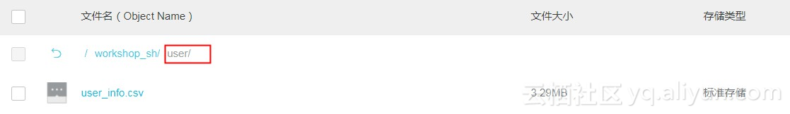 实验中,替换LOCATION 'oss://您的OSS存储空间名称/workshop_sh/user/'。如:oss://workshopsh20180608100/workshop_sh/user