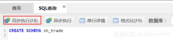 输入创建SCHEMA的语句,点击“同步执行”。