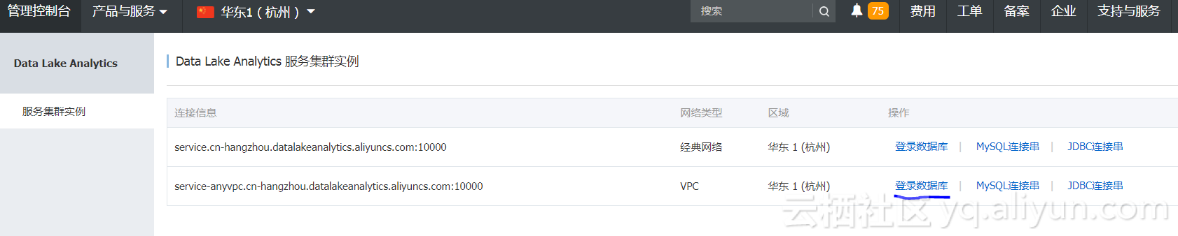 备注:目前DataLakeAnalytics公测中,需提交公测申请,开通试用。