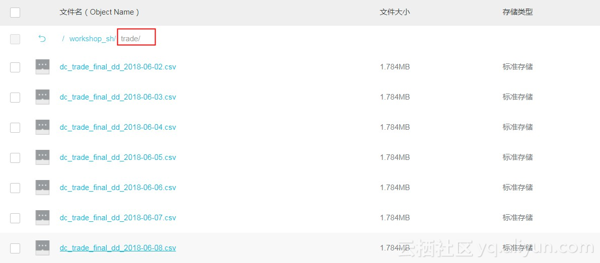 LOCATION 'oss://testdatasample/workshop_sh/trade/';