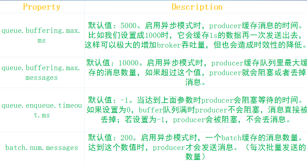 Kafka的发送模式,默认同步producer.type=sync,以下是异步的参数