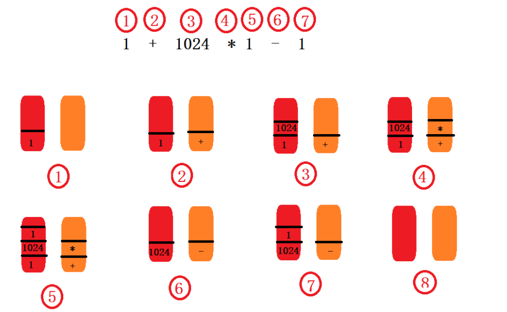 表达式求值过程:1+1024*1-1