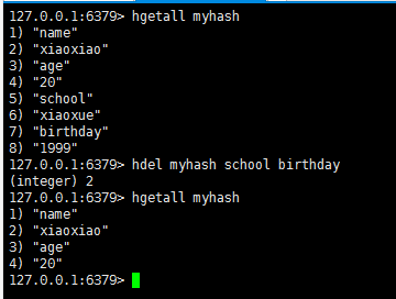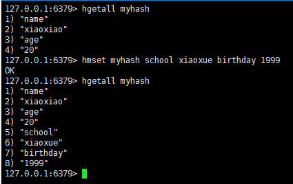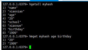 2)hgetall命令:获取该key的所有field以及对应的值。