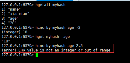 9)hincrby命令:给filed字段的值增加一个数,可以是负数。不能是浮点数。