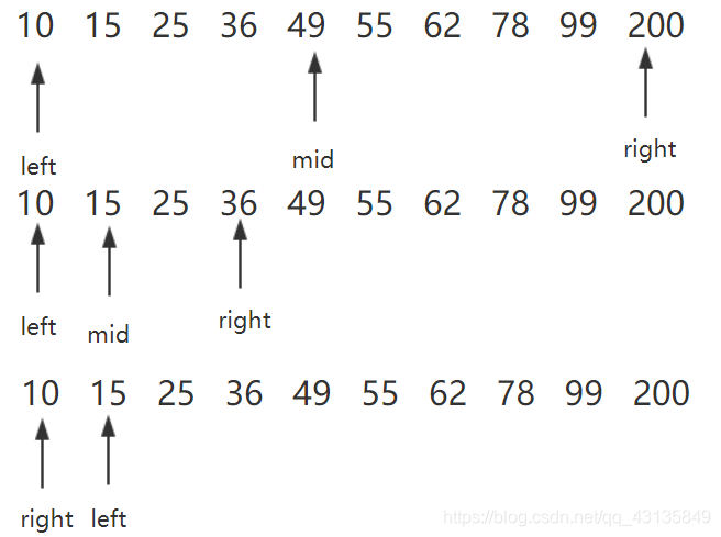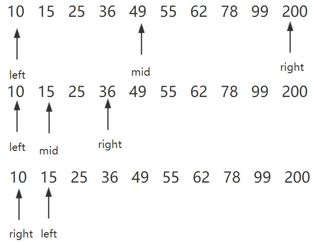 3、重复上述循环,直至查找成功或left>right