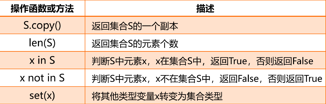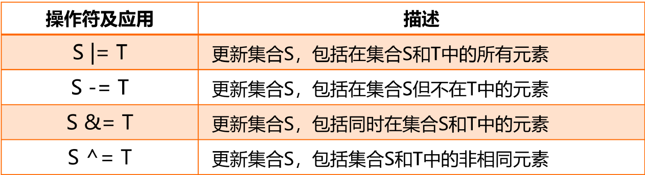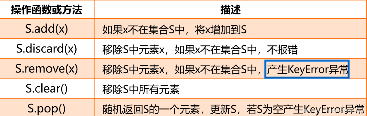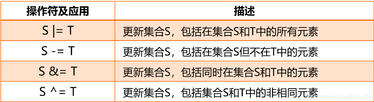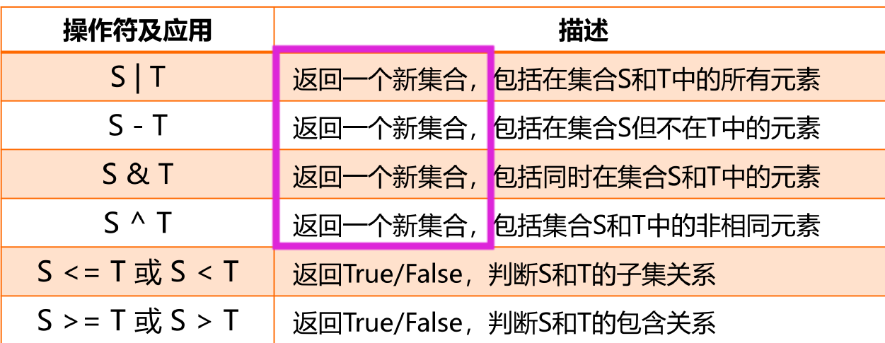 union(联合), intersection(交), difference(差)和sysmmetric difference(对称差集)